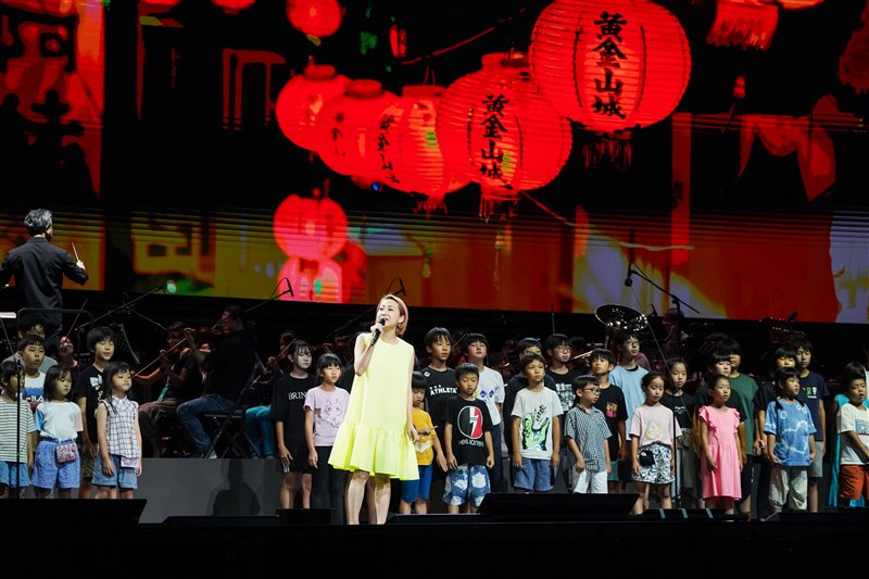 圖為一青窈與高雄市日僑學校超過70位孩子共同彩排演唱〈花水木〉 。圖/文總提供