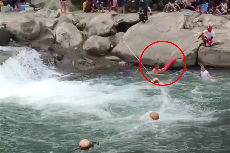 幸好紅十字會水安大隊志工迅速反應救援,投擲魚雷浮標將人拉上岸,隨後利用現場廣播系統提醒遊客注意安全,勿靠近瀑布附近水域。