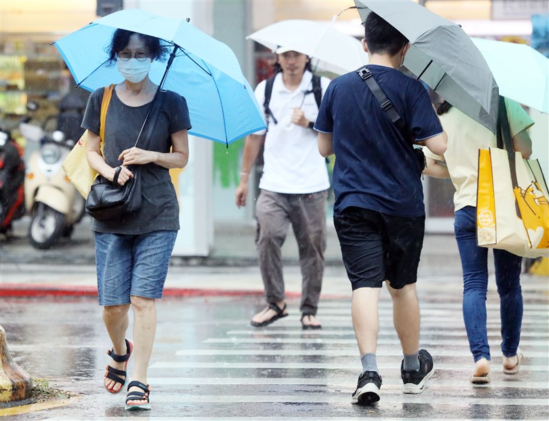 氣象局中午12:40發布雙北等12縣市大雨特報,恐下到晚上。其中雙北市和桃園有大雷雨。圖/中央社