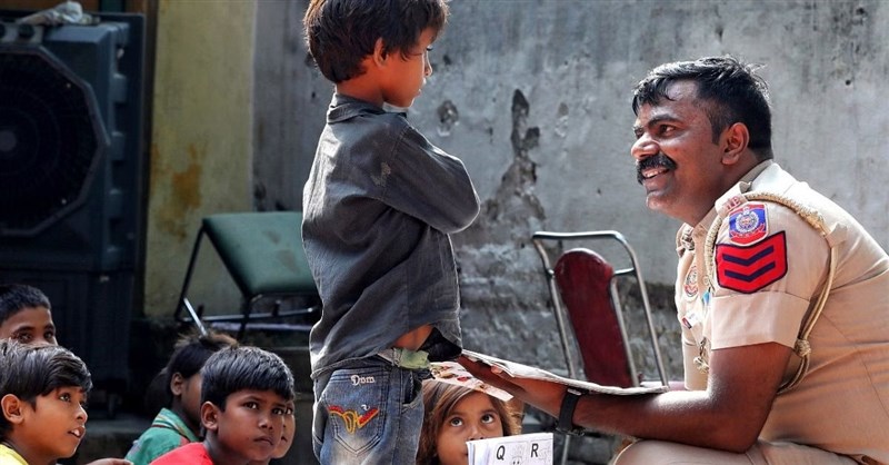 印度警察辛赫創辦免費學校,幫助貧民窟的兒童延續學業。圖/取自Tthe Better India網站