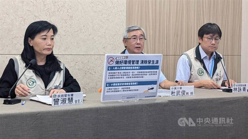 中興大學昆蟲系教授、國家衛生研究國家蚊媒中心防疫顧問杜武俊(中)在疾管署記者會指出,監測發現今年5月病媒蚊已有升高趨勢,且登革熱疫情從6月就開始出現,比往年都早,較令人擔心。圖/中央社