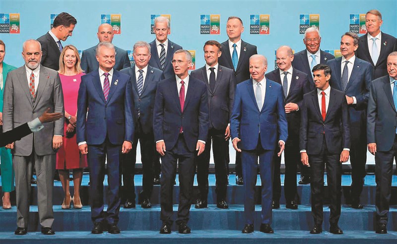 北大西洋公約組織在立陶宛首都維爾紐斯舉辦峰會,與會領袖11日合照。圖/法新社