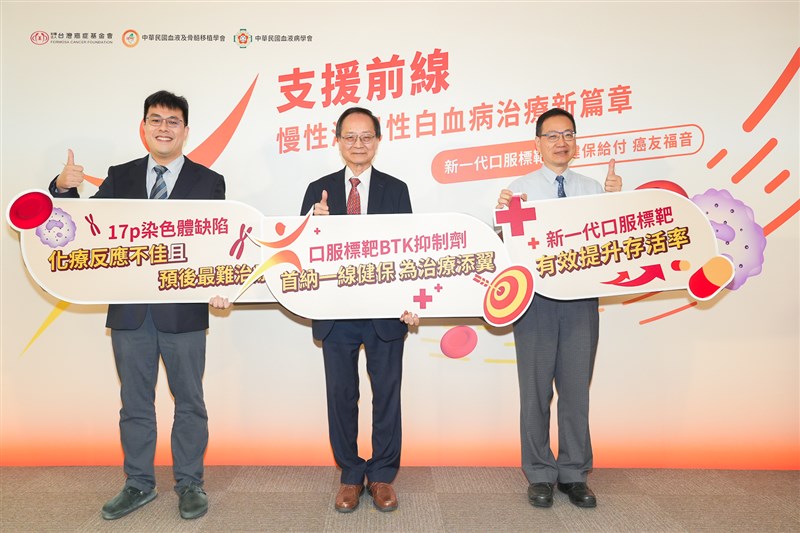 台灣癌症基金會執行長賴基銘表示,所幸今年7月迎來好消息,新一代口服標靶BTK抑制劑首獲健保給付,作為血癌中最難治的「CLL」慢性淋巴性白血病高風險族群(17p染色體缺陷)一線用藥,讓更多高風險族群病人受惠,血癌治療再翻新頁。
