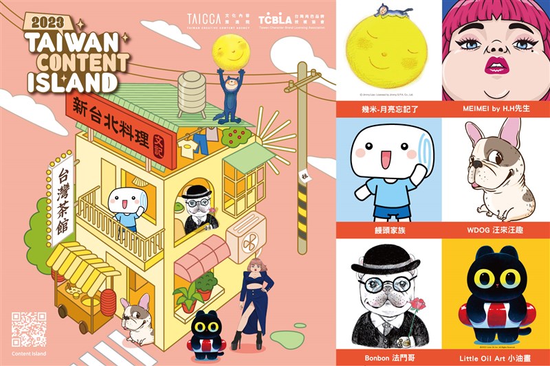 台灣館今年主題為「Taiwan Content Island 台灣巷弄最美的人文風景」,精選6組台灣原創角色參展,包括勇敢做自己的時尚女《MeiMei》、擅長以生動可愛的插畫擄獲人心的《Bonbon法鬥哥》、以華人飲食文化「饅頭」為創作靈感的人氣角色《饅頭家族》、圍繞汪星社區生活大小事的《汪來汪趣》、用細膩動畫探索奇幻宇宙的《小油畫》、以及療癒溫暖許多孤單人心的《幾米-月亮忘記了》。