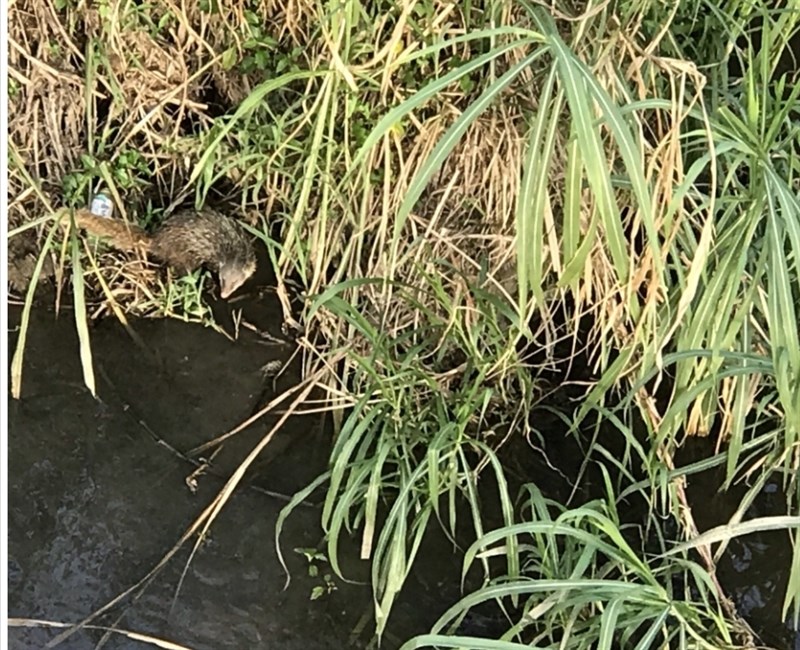 6月中旬有居民發現保育類動物食蟹獴一家三口現蹤指南溪,隨手拍下珍貴畫面。圖/居民陳慧玲小姐提供
