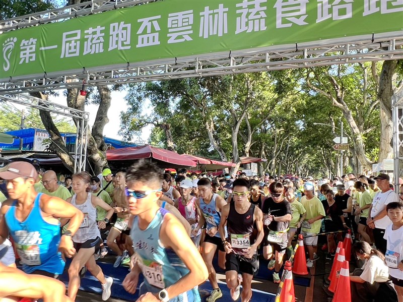 【本報雲林訊】雲林縣首場把健康路跑與健康蔬食兩大元素結合的第1屆「蔬跑盃」路跑大賽,今天在雲林縣古坑鄉綠色隧道由縣長張麗善嗚槍起跑,逾3000人參加,沿著古坑農園一路跑,瀏覽農業大縣綠野風光,黃姓參賽者說,運動和飲食是健康兩大要素,跑步時會自我提醒想健康就要多吃蔬食、多運動,別具創意。