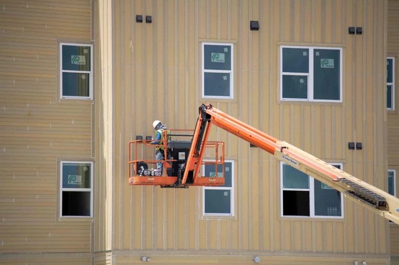 共和黨籍州長德州州長艾波特最近簽署一條新法,這條新法廢除奧斯汀和達拉斯等城市原本強制要求給予建築工人「喝水歇息」時間。圖於德州休斯頓,一名建築工人在熱浪中搭建壁板。 圖/法新社
