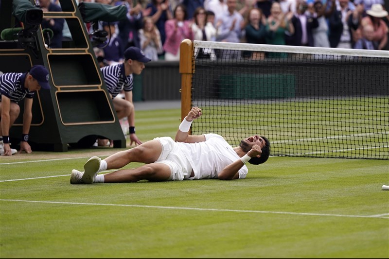溫網/超越活傳奇! 小蠻牛5盤大戰擊敗約帥封王 張哲郢 |2023.07.17 語音朗讀 2285觀看次 字級 大 中 小 奪冠後阿爾卡拉斯興奮地倒在場上大吼慶祝。圖/美聯社 【記者張哲郢綜合外電報導】溫布頓網球錦標賽16日男單決賽上演前後世代球王對決,雙方大戰5盤,西班牙「小蠻牛」阿爾卡拉斯(Carlos Alcaraz)1:6、7:6(6)、6:1、3:6、6:4打敗塞爾維亞約克維奇(Novak Djokovic),奪得生涯首座溫網冠軍。36歲的約克維奇賽前處在溫網跨屆34連勝、大滿貫賽27連勝,且他上次在中央球場輸球已經是2013年的事,這次要角逐生涯第24座大滿貫賽金盃。20歲的阿爾卡拉斯則是年輕世代最具主宰力球員,賽前本季勝率超過9成。過去兩人交手各拿1勝,但上次在法國網球公開賽交手由約克維奇勝出。首盤約克維奇首盤6:1看似順風開場,阿爾卡拉斯次盤狀態逐漸上軌,跟約克維奇戰到搶七,他從劣勢開局後轉守為攻,8:6成為今年溫網唯一能在搶七贏過約克維奇的球員。此戰中央球場受到風勢影響以及草皮狀態不佳,2人都出現多次判斷錯誤以及腳步暫不穩等狀況,阿爾卡拉斯借力使力,多次主動變換節奏,讓約克維奇陷入苦戰。約克維奇多次在比賽中滑倒。圖/美聯社第3盤關鍵第4局,阿爾卡拉斯歷經13次Deuce,耗時超過26分鐘,才靠著約克維奇回球掛網於單局第7個破發點破發,回敬約克維奇6:1率先聽牌。約克維奇處變不驚,第4盤2度突破阿爾卡拉斯發球局,逼出3個盤末點後雖被化解1個,阿爾卡拉斯雙發失誤,比賽進入決勝盤。決勝盤阿爾卡拉斯不放棄的精神,第3盤拚出直線致勝球從約克維奇手上拿到關鍵破發,出現賽末點後,用強力正拍逼出約克維奇掛網6:4勝出,終結這場4小時42分大戰。當今球王終止約克維奇連勝之旅,讓約克維奇10年後再度於中央球場吞敗,阿爾卡拉斯則成為史上第5位在21歲前就能2度奪得大滿貫賽冠軍的選手。阿爾卡拉斯成為史上第3位不到21歲就能在溫網奪冠的選手。圖/美聯社 前一篇文章 中職/潘傑楷暌違近1年開轟 讓陳韻文寫紀錄 下一篇文章 溫網/不相信戰勝約帥 小蠻牛:我剛出生他在贏球 熱門新聞 01渥太華佛光山 授海狸童軍領巾2025.11.1702警告日本 陸黃海軍演、籲暫勿遊日 2025.11.1603【詩】遊園地.競馬場2025.11.1704墨西哥熱氣球節 高空爭豔2025.11.1605芬普尼毒蛋 又爆4萬顆流入市面2025.11.1606落葉刺繡 巴西百鳥寫真集2025.11.1707克林姆富家女肖像畫 估值46億元2025.11.1708【快樂塗鴉簿】熱鬧的內灣小鎮2025.11.1709AMR機器人 是什麼?2025.11.1710中日緊張 陸4海警船巡航釣魚台2025.11.17 訂閱電子報 台北市 天氣預報 台灣一週天氣預報 相關報導 政院版財劃法 1.2兆挹注地方鄭黃會 促2026選戰藍白合財劃法 地方盼計畫型補助不變賴清德再籲韓國瑜 為國會站出來兩岸、日韓關係牽扯 韓黑鷹特技小組 缺席杜拜航展台中甲埔大道 明年首季通車 作者其他文章佛大女籃 用最健康姿態迎戰UBA政大陣容堅強 衝刺6連霸世界盃男籃資格賽 中華首戰日本中華隊第8金 健力世錦賽 楊森包辦1金1銀1銅射箭亞錦賽 戴宇軒、李彩綺混雙摘金戴資穎高掛球拍 羽壇傳奇謝幕
