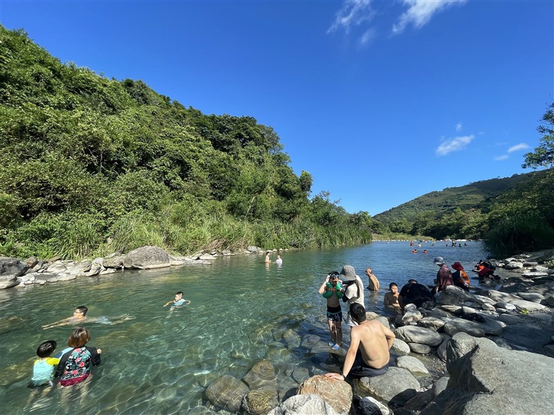 圖為民眾到溪邊戲水消暑。圖/中央社