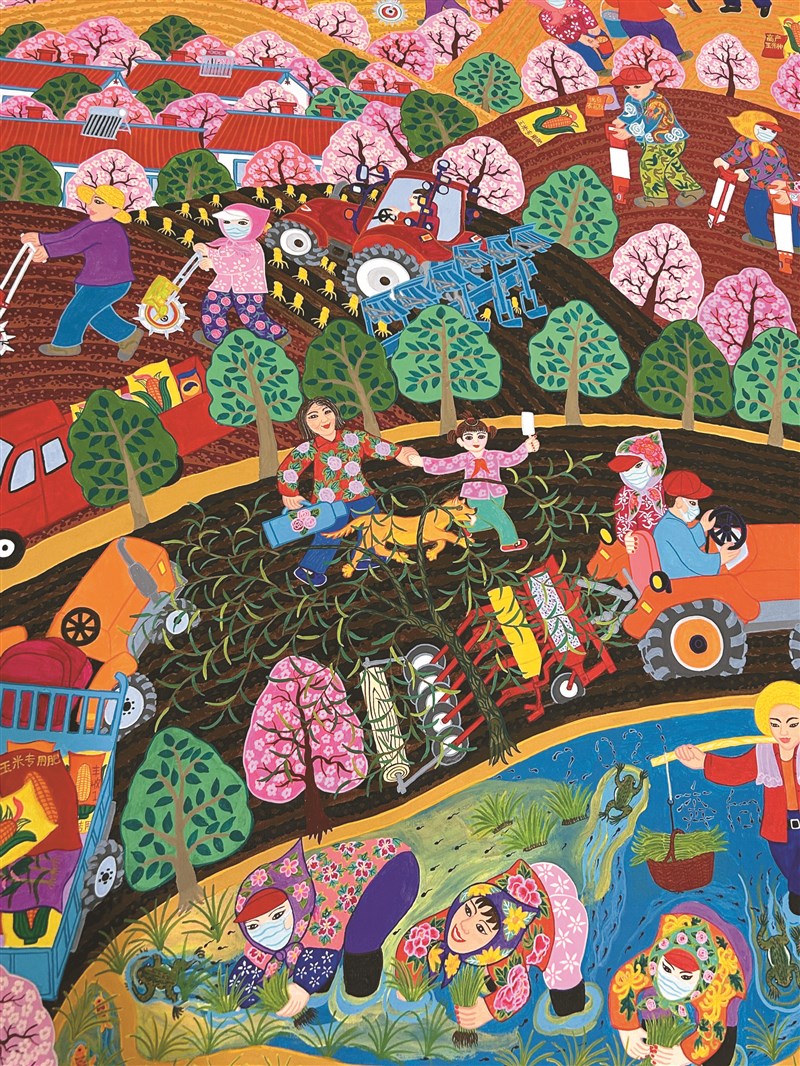 「我畫的都是現在農村真實發生的事,這些鮮活的畫面都在我腦子裡」,郭麗華解釋,希望用繪畫的形式,讓大家更深入了解農村生活,並將農民對美好生活的嚮往體現在作品中。
