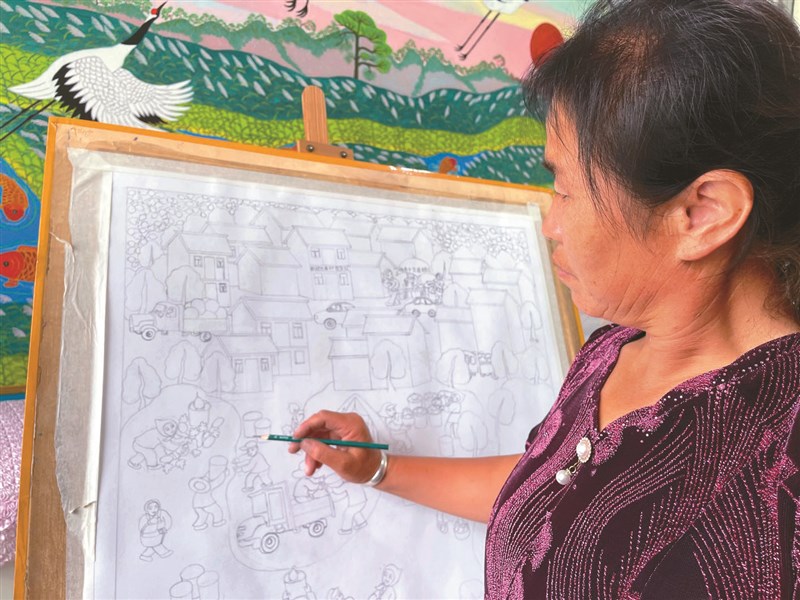 郭麗華創作的農民畫作品,展現農村生活的時代變遷。圖/新華社
