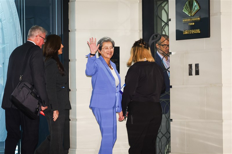 超微(AMD)董事長暨執行長蘇姿丰(藍衣者)19日到台北文華東方酒店,出席「超微創新日」活動與供應鏈廠商見面。圖/中央社