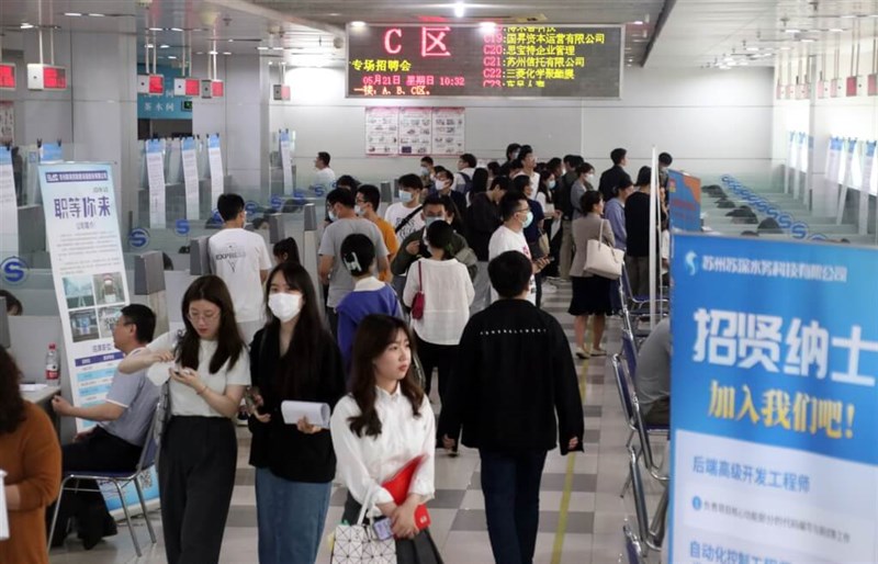 【本報綜合外電報導】中國大陸6月份青年失業率21.3%創歷史新高。但財新網引述北京大學副教授張丹丹研究指出,若將約1600萬名躺平、啃老等不工作者均視為失業,中國3月份青年實際失業率最高上看46.5%,遠高於官方公布的19.7%。