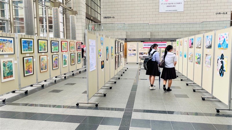 日本台灣文化藝術交流會與鳥取縣,共同在鳥取縣民文化會館舉辦「日本鳥取縣-台灣學校作品聯合展」,新竹新豐國小等校獲邀參展。圖/新竹縣府提供