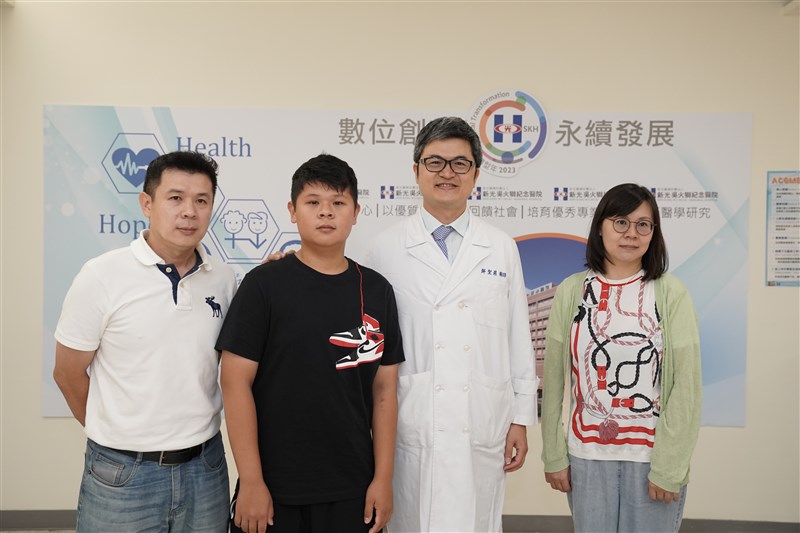新光醫院眼科醫師鄭聖甫表示,「角膜交聯手術」是治療圓錐狀角膜的有效手術。左二吳同學,為2021年接受手術成功的「台灣第二例」。圖/新光醫院提供
