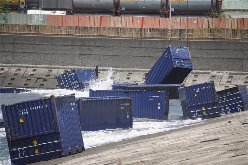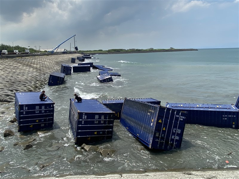 王國材說,「天使輪」有573只空貨櫃漂流在二港口和林園一帶海域,目前已處理303只、160只已沉沒海底,暫時不會有危險。現階段優先處理在淺灘的貨櫃,因這部分最容易被再沖回海裡;卡在消坡塊部分,如無法立即調移,也會運用空拍機拍照定位,在颱風後比對、追蹤。