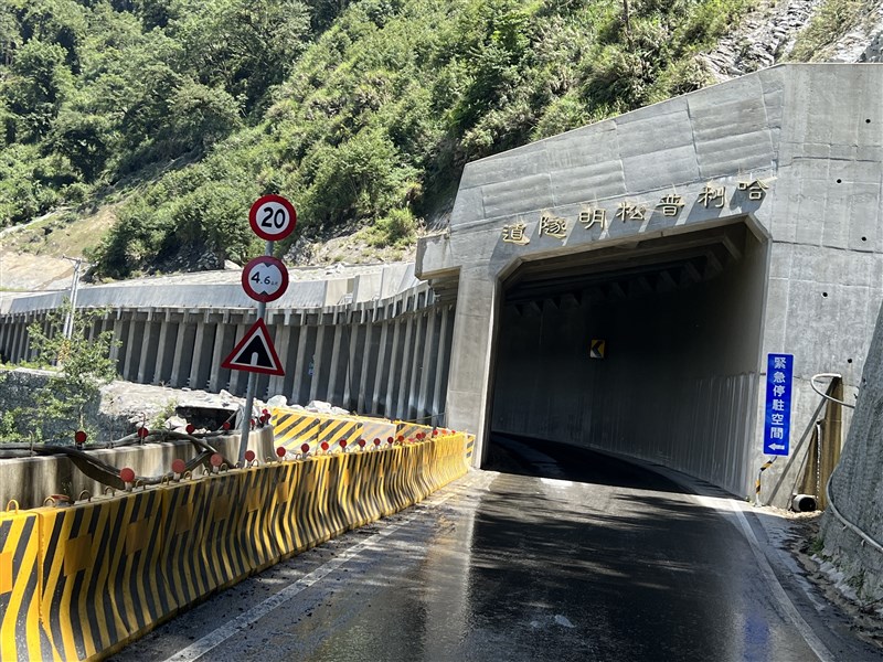 因應颱風杜蘇芮來襲,交通部公路總局指出,截至26日晚間6時,南橫、中橫、北橫山區段等10處省道路段預警性封閉。圖為易坍方的栗園路段哈利普松明隧道。圖/中央社