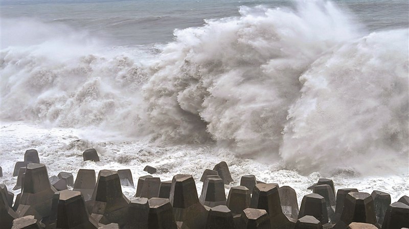 颱風杜蘇芮逐漸接近台灣,台東海面昨日出現長浪,在岸邊激起逾10公尺浪花。