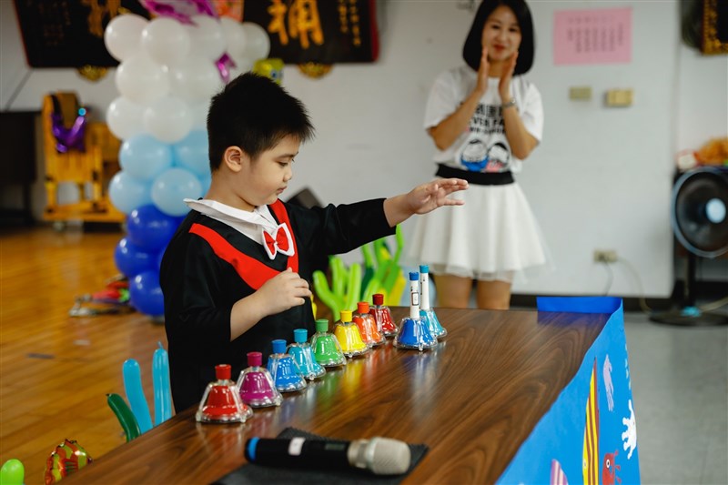 小安代表畢業生演奏音樂鐘。圖/唐氏症基金會提供