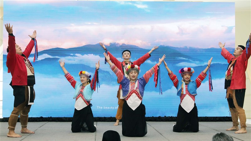 2023年馬來西亞MITM國際旅展28日開幕,來自台灣阿里山「跳動的山林」原住民舞團呈現鄒族傳統古謠與神話故事的文化氛圍。圖/中央社