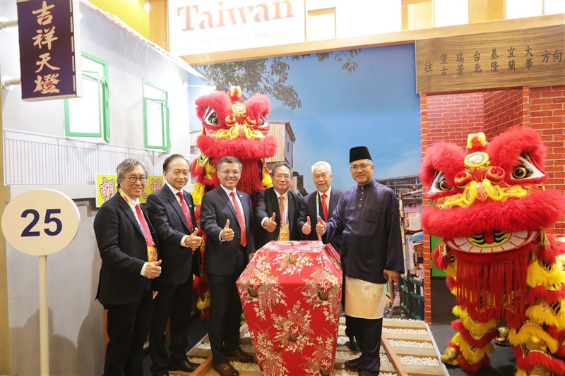 2023年馬來西亞MITM國際旅展28日開幕,大馬旅遊促進局副局長慕沙尤索夫(Musa Bin Yusof,右1)參觀台灣館。圖/中央社