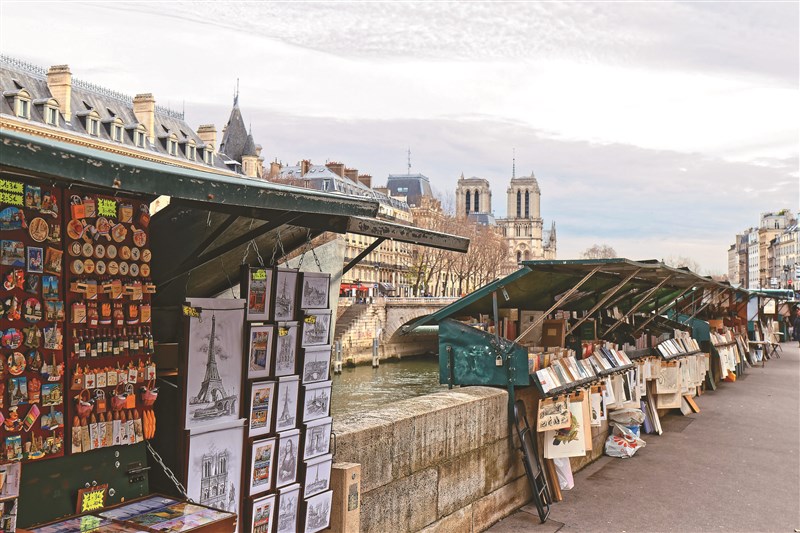 塞納河沿岸的舊書攤有400年歷史,也是巴黎獨有的人文景觀。圖/123RF