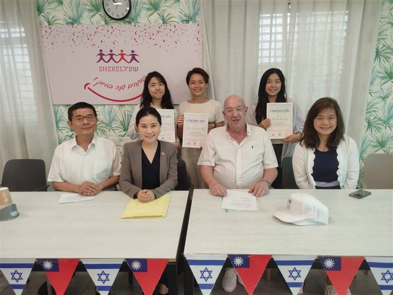 駐以色列代表李雅萍及東海教授周瑛琦亦受邀出席。台灣東海大學2名外文系及1名景觀系學生今年透過駐以色列代表處的牽線與東海大學企管系周瑛琦的媒合安排,於7月上旬抵達以色列貝達蒂克法(Petach Tikva)市的知名社福機構SHEKEK從事義工服務4周,協助該組織身心障礙老人日照所需。