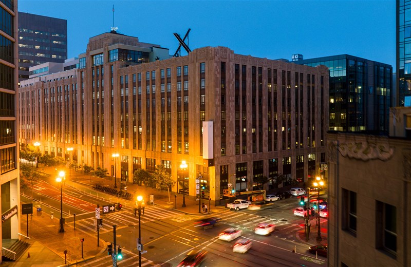 路透報導,坐落在舊金山鬧區市場街(Market Street)的總部大樓28日豎起一個巨型X標誌,夜間發出的耀眼強光挨轟擾民,舊金山建築勘驗廳也表示正在針對這個X標誌的結構進行調查。
