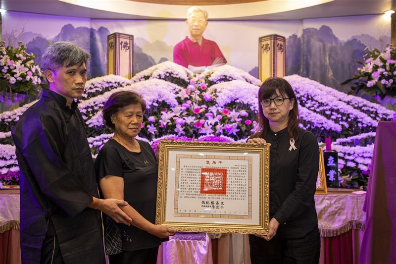 【記者曹麗蕙台北報導】重要文化資產保存技術「剪黏泥塑技術」保存者徐明河於7月17日辭世,享壽82歲。文化部政務次長李靜慧今(31)日出席告別式,並代表頒贈總統褒揚令,由徐明河遺孀徐林月女代表受贈。