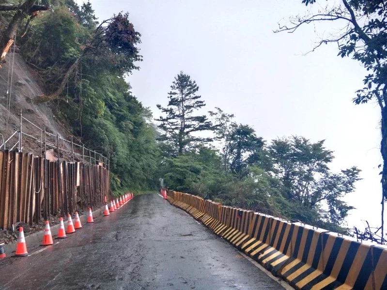 其中,台14甲線18.7K翠峰路段先前因豪雨落石坍方,雖經搶通,但邊坡不穩定,近期執行邊坡搶修工程,每天深夜0時至清晨6時管制封路施工,目前已完成刷坡掛網、鋼軌樁加襯板等短期加固作業,並於裸露坡面覆蓋帆布。