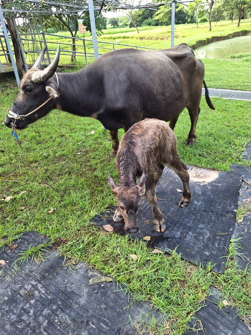 農業局畜產科科長徐幸君說,「阿花」是今年初發現的走失水牛,農業局接手安置後,因無人前來認領,因此收編為老牛的家成員、妥善照顧。過了數月後,園區發現「阿花」腹部隆起懷孕,經獸醫檢查後身體情況良好,並於七月底產下可愛的小牛兒。