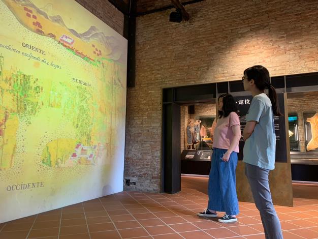 為讓歷史躍然紙上,熱蘭遮博物館特別在牆面四公尺高的投影畫面,形塑出立體感場景,讓一幅幅重要歷史圖像呈現於觀者眼前、並隨著輕柔的浪潮聲與海浪流動的意向而更迭,傳達安平時而平靜、時而壯闊的地景變化、相當生動。