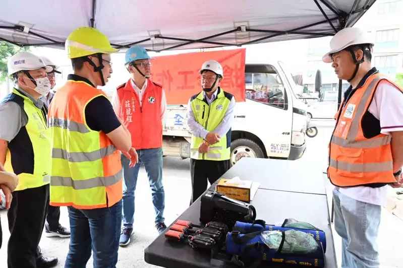 立委莊競程、經發局長張峯源今到現場關心施工情形,並慰問辛苦趕工的工程人員。
