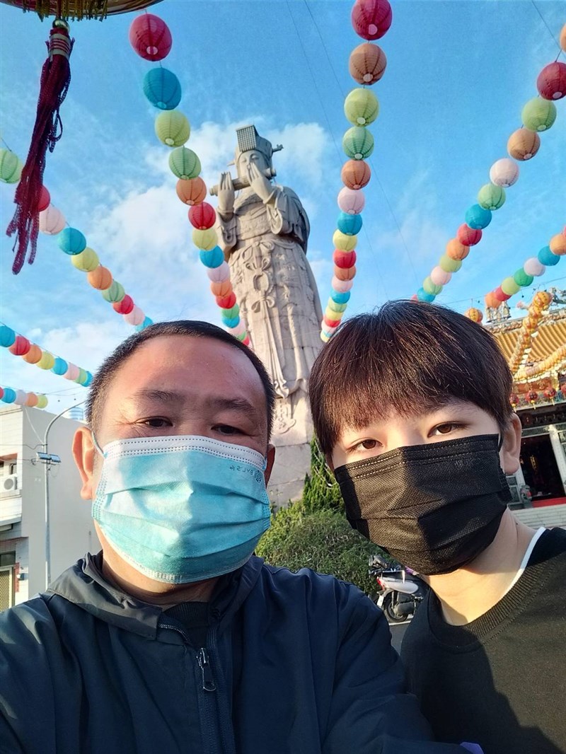 女兒陪著阿聰爸爸,向媽祖祈福。圖/陽光基金會提供