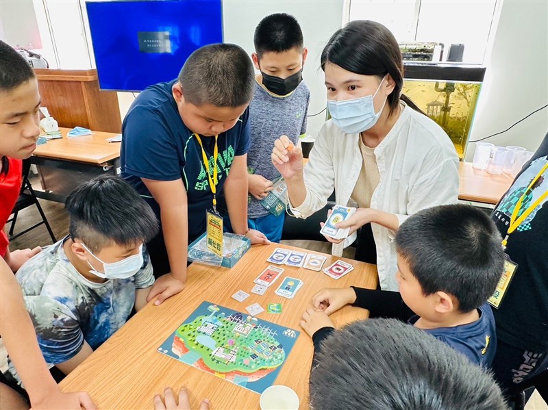 室內課程則結合水環境教育園區的「水水嘉義」認識水資源,節電課程則結合台電首款動力能源「綠動電電島」節電桌遊教案宣導,以有趣方式讓學童了解能源的作用以及重要性。