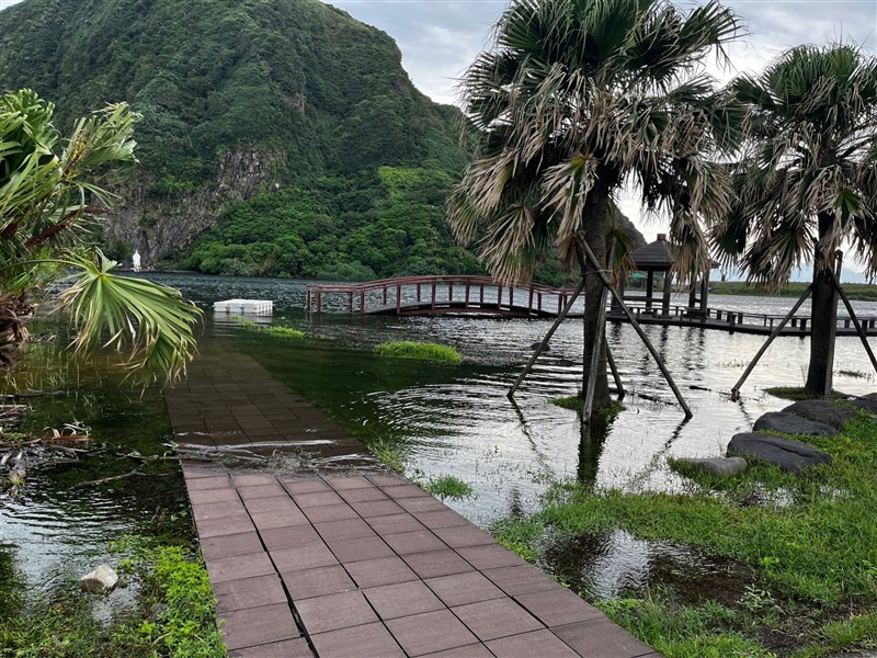 龜山島內設施如龜尾湖步道仍有積水,8月7日將視修復狀況決定是否開放登島。圖/取自臉書東北角之友