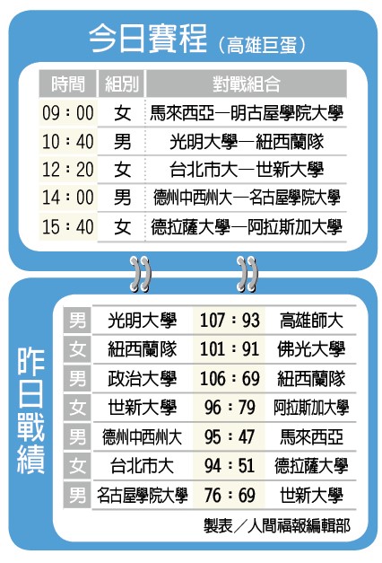 佛光盃3連勝 政大打出王者氣勢 張哲郢 |2023.08.05 語音朗讀 581觀看次 字級 大 中 小 光明大學勒布朗克(左,Isiah Marcos Le Blanc)25分8籃板。 圖/人間社記者周倫面對紐西蘭隊(左)的強攻,佛光大學嚴密防守。圖/人間社記者莊佳穎製表/人間福報編輯部 【記者張哲郢高雄報導】佛光盃大學籃球邀請賽昨日已出現晉級4強隊伍,首度參賽的政治大學男籃以106:69打敗紐西蘭國家隊,成為截至昨日止的唯一預賽3連勝隊伍,分組第1前進4強。政大與佛光山光明大學、高雄師大與紐西蘭分在A組,B組則有世新大學、美國中西州立大學、馬來西亞代表隊與日本名古屋學院大學。前2天分別以33分、46分差打敗光明大學、高師大的政大,昨天在吳志鍇全場22分、8籃板帶領下,再以37分差擊退紐西蘭,以平均勝分超過38分,展現王者氣勢晉級4強。政大總教練陳子威指出,如果沒有佛光盃,就沒有機會讓球員們體驗各國球風,雖然贏球,但紐西蘭的傳導流暢,值得學習;也多虧佛光盃,讓他們打出吳志鍇這名轉型3號位的未來大將。此外,名古屋學院大學女籃昨日休兵,但紐西蘭女籃以101:91擊敗佛光山佛光大學,幫了名古屋學院一把,提前鎖定女籃A組4強,佛大則因勝負分的劣勢、無緣4強。佛大雖敗陣,但陣中升大三的連文鈴揮別前戰只拿3分陰霾,以8顆三分球轟得全場最高34分;她表示,自己必須要跳出來,新學年成為球隊副隊長,必須以身作則。紐西蘭仍以惠特克(Lauren Whittaker)31分、21籃板最佳,她表示,球隊歷經前2天敗仗,無論如何都要搶下這場勝利、保住晉級機會。女籃B組世新以96:79勝美國阿拉斯加大學安克雷奇分校,北市大學以94:51勝菲律賓德拉薩大學,在同組其他2隊都已吞2敗,雙雙以2連勝挺進4強。預賽今日結束,將產出最終4強,上午首戰女籃馬來西亞與名古屋學院將決定A組晉級名單,男籃佛光山光明大學與紐西蘭之戰、勝隊晉級,接續北市大學與世新「全勝之爭」、中西州大與名古屋學院「美日大戰」、德拉薩大與阿拉斯加大「首勝之爭」,都值得球迷前來高雄巨蛋觀賞。 前一篇文章 颱風卡努帶來豐沛雨量 南部水庫進補最多 下一篇文章 強降雨炸中南部 掏空飯店地基 熱門新聞 01MLB太空人打敗洛磯 鄧愷威中繼成功2026.04.1602佛光大佛供奉法華塔與《法華經》信仰意涵2026.04.1203蔬食技巧 不吃肉也能補足蛋白質2026.04.1304澱粉食物 口感變化有祕訣2026.04.1305【深深思念】把悲傷 穿在身上2026.04.1406《浩瀚星雲》大阪海外首演 轟動滿座 2026.04.1407佛光山線上佛學院開學 逾百學員雲端共學2026.04.1508預備檀講師研習 傳播人間佛教正能量2026.04.1409法全票通過 掠奪文物歸還中國2026.04.1710高市國稅局長訪佛光山 認識人間佛教2026.04.13 訂閱電子報 台北市 天氣預報 台灣一週天氣預報 相關報導 勞動部將研議 勞退舊制移入新制宜蘭觀光大聯盟 漫遊冬山河新北美術館藝術盛典 日夜皆美翡翠水庫 不再支援台電發電三奇美徑彩稻 Q版波波草可愛吸睛淡江大橋通車紀念票 作者其他文章MLB太空人打敗洛磯 鄧愷威中繼成功麟洋配重出江湖 清晨盃合拍 引退主題日落幕 林志傑淚崩鄭宗哲完全打擊 紅襪3A第1人拚戰職籃26年 野獸林志傑引退 陳念琴擊退北韓女將 亞錦賽奪金