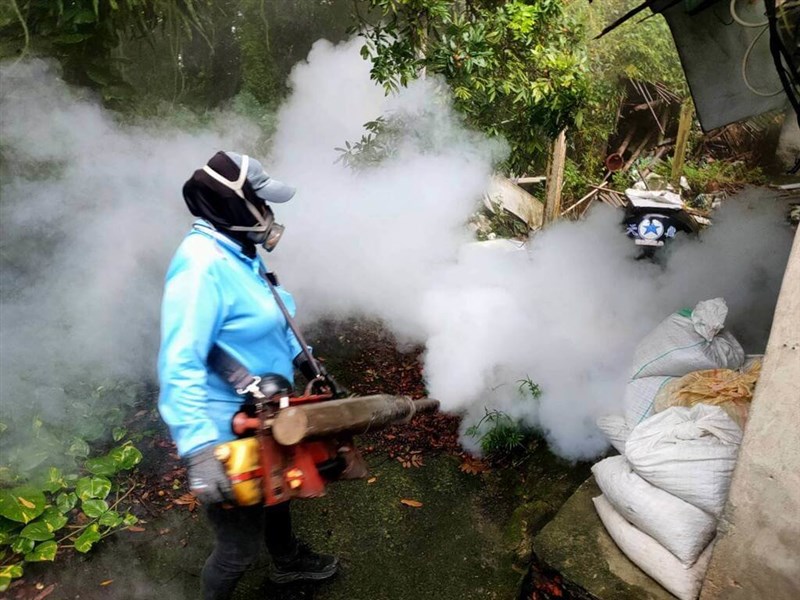 嘉義縣出現4例本土登革熱案例,為梅山鄉某營建公司員工,縣府5日針對確診者活動區域啟動化學防治措施,避免傳染範圍擴大。圖/嘉義縣政府提供