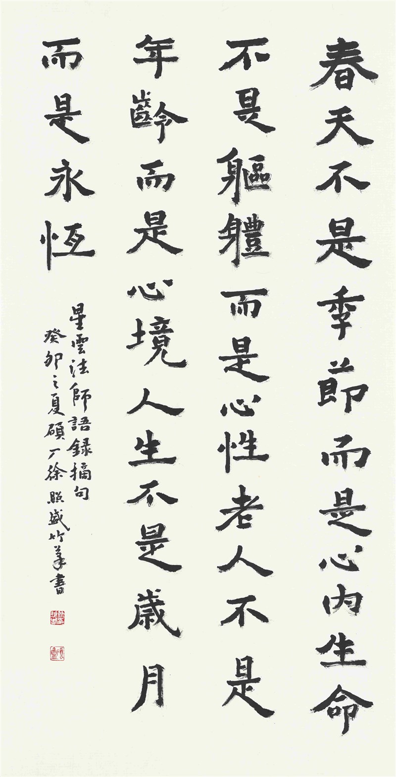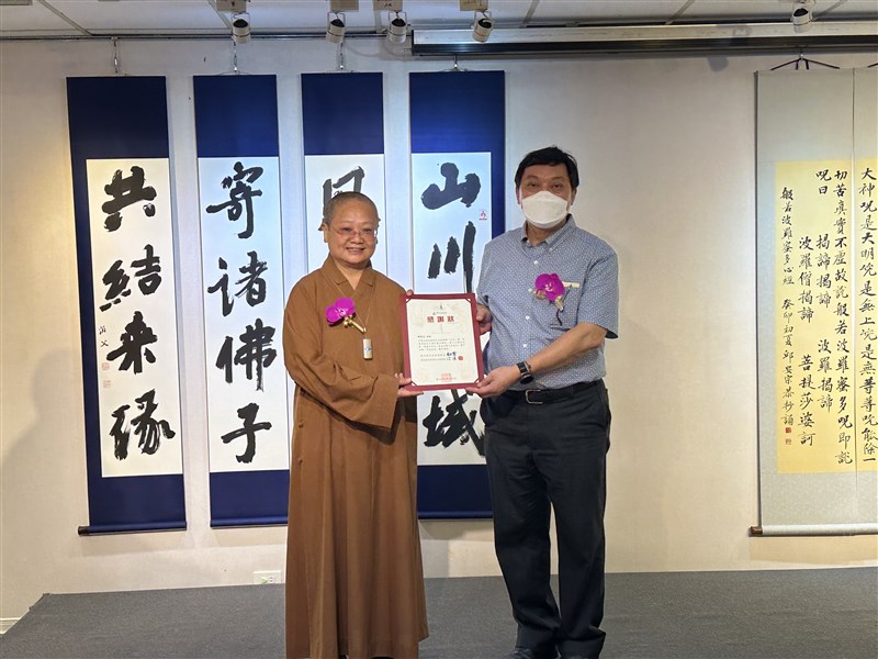 佛光緣台北館「延光心墨」特展 16位書家揮毫「星雲法語」 曹麗蕙 |2023.08.06 語音朗讀 2350觀看次 字級 大 中 小 「延光心墨─延墨書會40周年書法聯展」即日起至9月24日登場,今舉行開幕式。圖/記者曹麗蕙 【記者曹麗蕙台北報導】踏進佛光緣美術館台北館,隸書的〈心無罣礙〉、草書的〈觀自在〉、行楷的〈做好事說好話存好心〉,一幅幅書體各異、出自佛經和星雲大師法語的書藝作品,一一展陳在大眾面前,不僅帶來佛法與書法交織的藝術饗宴,同時也以精彩書作,追思、緬懷星雲大師。「延光心墨─延墨書會40周年書法聯展」即日起至9月24日登場,共展出余天賜、徐照盛、呂佳玲等16位書會成員、97件作品,以多元書篆傳統書法、現代書藝等形式,揮毫出「佛緣佳句」、「星雲法語」及「個人作品」三個單元。「延光心墨─延墨書會40周年書法聯展」中,16位書家以多元書篆傳統書法、現代書藝等形式,揮毫出「佛緣佳句」、「星雲法語」及「個人作品」三個單元。圖/記者曹麗蕙 延墨書會會長陳俊光表示,這是書會首次跨越濁水溪北上舉辦聯展,「佛緣佳句」是依每位會員自身對佛教的感悟與理解,將《金剛經》、《心經》經文與禪詩偈語等訴諸筆墨。陳俊光的〈星雲法師三好並記〉。圖/延墨書會提供 「去年書會就已決定要規畫『星雲法語』單元,沒想到大師今年圓寂。」陳俊光表示,為感念大師對佛法的弘揚,書家們以「星雲法語」為創作題材,選擇相應的箴言法語,寫成書法作品,表達對星雲大師追思與緬懷。而自2006年就開始為大師墨寶刻章的陳俊光,感動大師生病後雖「視茫茫」仍弘法不遺餘力,這次也特別致贈〈星雲法師三好並記〉墨寶予台北館。陳俊合的作品〈心無罣礙〉 。圖/延墨書會提供 聯展展出近百件作品,包括陳俊合、陳俊光兄弟的書墨創作,其中陳俊合的〈心無罣礙〉,不僅傳達只要心無罣礙,遠離顛倒夢想,就能活得自由自在作,作品特殊處,在用彩筆在中心,以大篆書體寫一個心,用小篆書體寫無罣礙,行書則標註星雲大師法語。 徐照盛的楷書作品〈星雲法師語錄選句〉 。圖/延墨書會提供 有醫檢師背景的書法家徐照盛,則用竹筆寫下楷書〈星雲法師語錄選句〉:「春天不是季節,而是內心;生命不是軀體,而是自性;老人不是年齡,而是心境;人生不是歲月,而是永恆。」自高雄醫學大學附設中和紀念醫院退休後的他,看盡人生百態後,對大師這段法語特別有感悟。陳俊光的行書作品〈日本長屋王山川異域偈〉,靈感則來自2019年新冠疫情嚴峻時,日本捐給武漢物資箱上印的一句詩「山川異域,風月同天」,原句就是出自日本長屋王。余天賜的〈星雲法師四句〉 。圖/延墨書會提供 台北道場住持滿謙法師表示,「萬法唯心造」展覽中的每幅作品都流露出書家的真心,書作內容均可作為日常生活的格言佳句,相信民眾細細觀之都會有所啟發。「這時代需要書法教育」,延墨書會已邁入40不惑之年,希望未來能注入更多新血,將書法翰墨延續下去。高雄市延墨書會會長陳俊光特別致贈〈星雲法師三好並記〉墨寶予台北館,台北道場住持滿謙法師(左)致贈感謝狀。圖/記者曹麗蕙 前一篇文章 北市中山區近千戶停電 台電估晚上6點復電 下一篇文章 U12世界盃/日委上演打擊大戰 委內瑞拉抱回季軍 熱門新聞 01瑕疵品反爆紅 哭哭馬賣到缺貨2026.01.1402南亞偏鄉師參學新馬寺 交流創意教學法 2026.01.1403平價版人類洗澡機 預計年底開賣2026.01.1404日電鐵貴志站 任命第3代貓站長2026.01.1405新馬寺 佛光兒童歡喜入學禮2026.01.1306重慶川普紅不讓 談旅遊給人歡喜2026.01.1407菲律賓三好校園頒獎 129校獲表揚2026.01.1308金球獎提摩西夏勒梅封帝 蘿絲拜恩摘后2026.01.1309台南林鳳營 落羽松花海2026.01.1310野森動物學校 17日試營運2026.01.13 訂閱電子報 台北市 天氣預報 台灣一週天氣預報 相關報導 高雄新材料循環產業園區台半導體供應鏈 4成移美歷來最大手筆 台積今年資本支出 將逾500億美元台電技能競賽 1281名好手展技蔣經國逝世38周年 鄭麗文頭寮謁陵顧立雄:斷續收到墜海F-16黑盒子訊號 作者其他文章共織宇宙 、林克恭個展 新美館登場從飲食到志怪 7作品入選寫台北書單山海塾《影見》登台 致敬天兒牛大遊園驚世夢 詮釋 《世世動了心》三世緣台北國際書展 2月3日登場 推閱讀泰精彩排氣管變身白鷺鷥