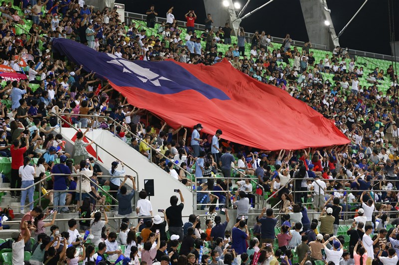 場邊觀眾舉起大國旗為中華隊加油。圖/中華棒協提供