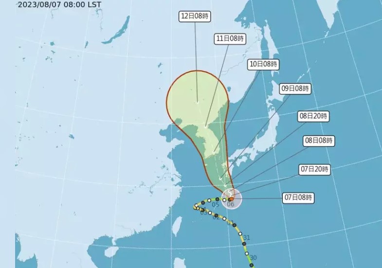 卡努颱風可能將再度增強為中度颱風,預期會往日本九州、通過韓國的方向往北走,專家稱是非常怪的颱風。圖/取自氣象局網站