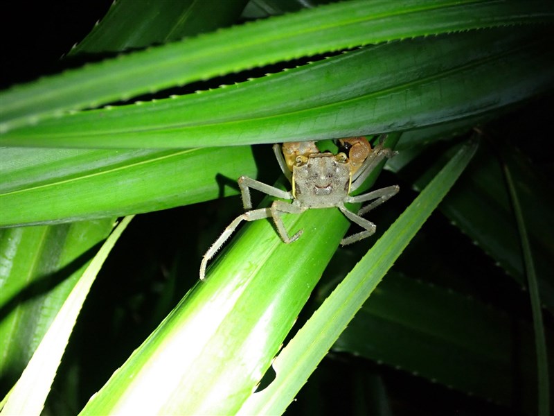 交通部觀光局東部海岸國家風景區管理處在綠島進行陸域生態資源調查,3年來發現島上陸蟹與陸寄居蟹共有20種,其中「林投攀相手蟹」為新紀錄種。圖/東管處提供