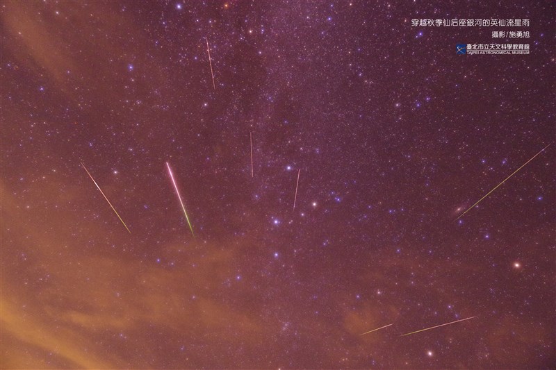 穿越秋季仙后座銀河的英仙流星雨。圖/台北市立天文科學教育館攝影施勇旭提供