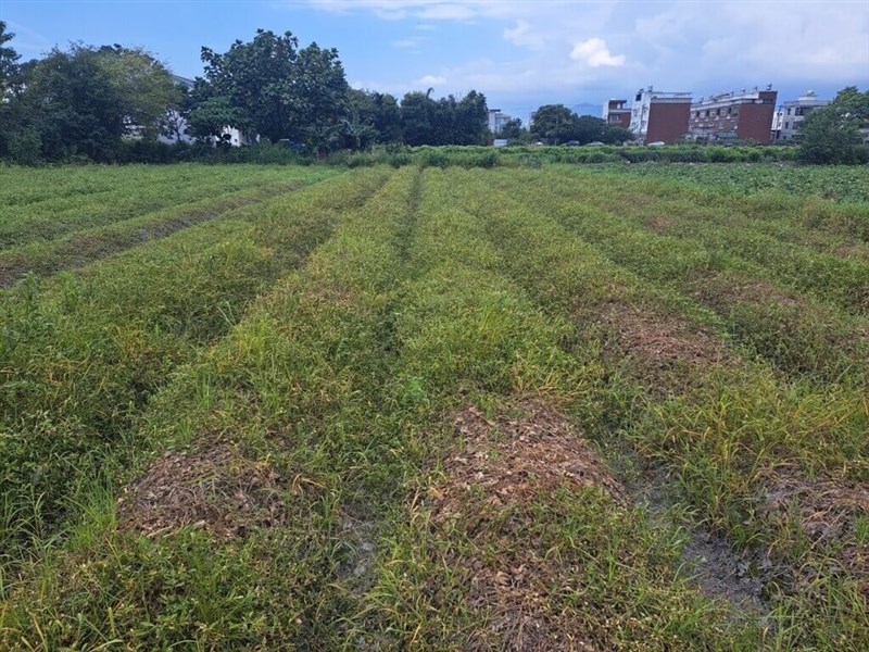 颱風過後,花蓮縣政府持續現勘農作物損害情形,吉安鄉龍鬚菜有49公頃、出現萎凋枯黃情形,損害程度25%已達天然災害救助啟動標準,將提報農業部爭取現金救助。圖/花蓮縣政府提供