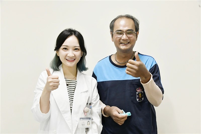 劉瑋莉醫師與病友謝先生開心合影。圖/大林慈濟醫院提供