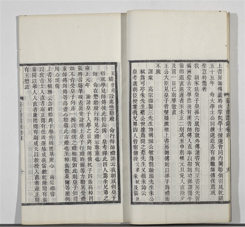 阿哥們的功課表則強調文武合一,並雜揉中、西科學,與中國歷朝側重文科學習大相逕庭,卻似乎可與當今學齡教育之多元學習領域相互比照。授課內容包括漢文化之儒家經典、詩詞文賦、滿蒙語文、騎射習武、書法練字及天文、數學等西方科學。