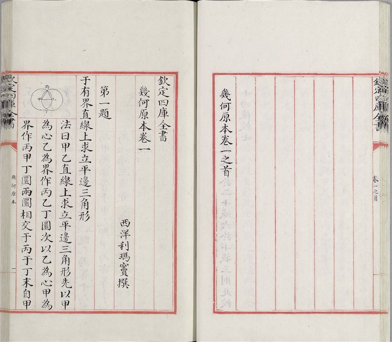 康熙帝對西方科學極感興趣,也鼓勵阿哥們接觸西學,如展出的《幾何原本》(圖)。圖/故宮提供