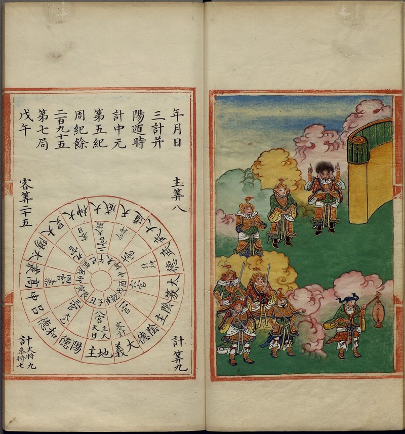 占卜類圖籍如《太乙集成》、《大統通占》等展現明代宮廷寫繪濃豔重彩風格,彩繪星象插圖突顯古人敏銳的觀察能力。