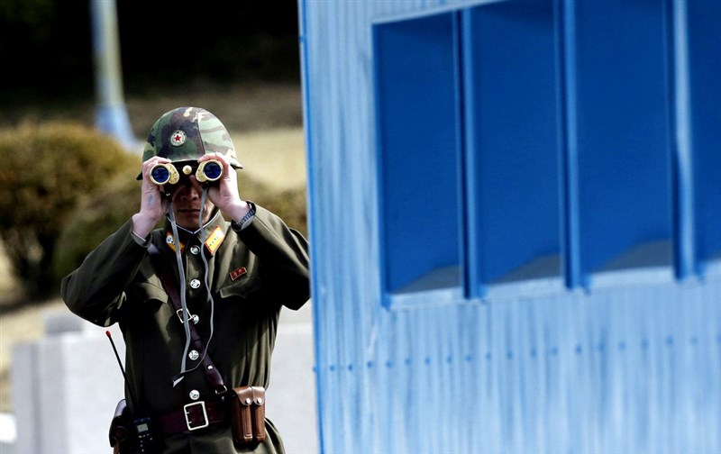 美國二等兵金恩7月18日在參觀兩韓邊境板門店「和平村」時,跨界闖入北韓,金恩表達在北韓或第三國尋求庇護的意願。圖為駐守板門店的北韓士兵。圖/美聯社