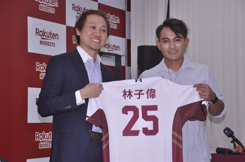 林子偉(右)將會穿上25號戰袍,並以超越陳金鋒的合約總值成為猿隊一員。圖/記者張哲郢